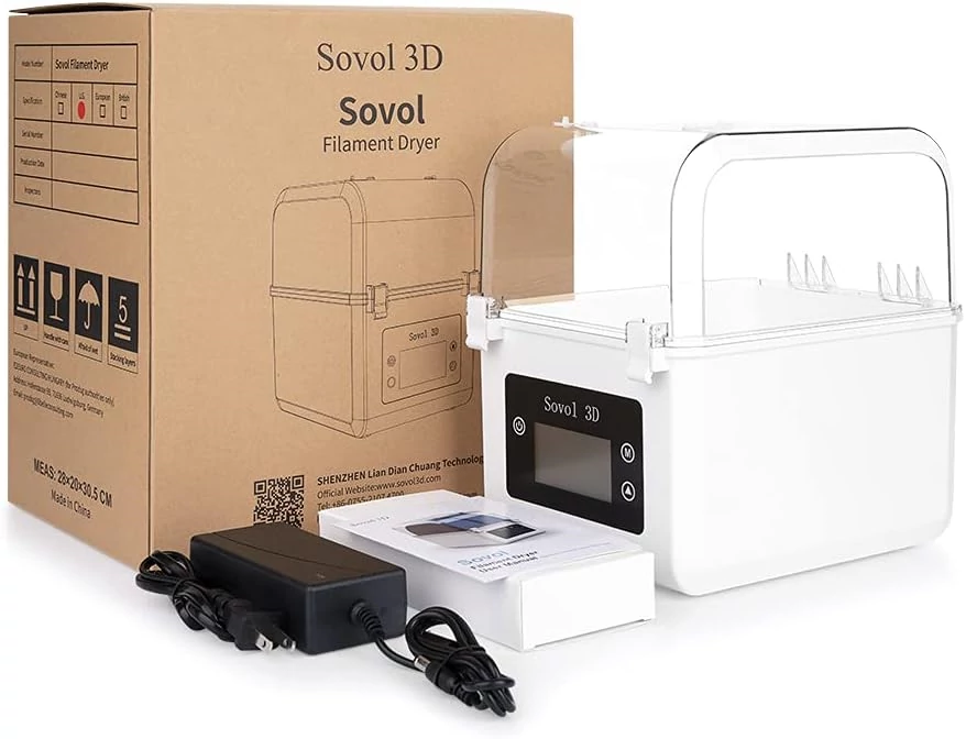 A filamentek közül sok érzékeny a nedvességre, ami nyomtatási hibát okozhat. A Sovol SH01 képes eltávolítani a felesleges nedvességet, szárazon tartja a filamentet, így a nyomatok felülete simább lesz és a rétegtapadás is fokozódik.
